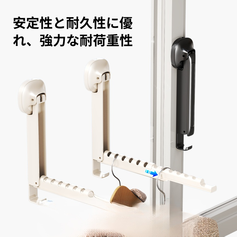 伸縮式物干しラック収納で省スペース実現。長さ調節可能、組立簡単、耐荷重設計、室内外両用、使わない時はコンパクト収納可能。